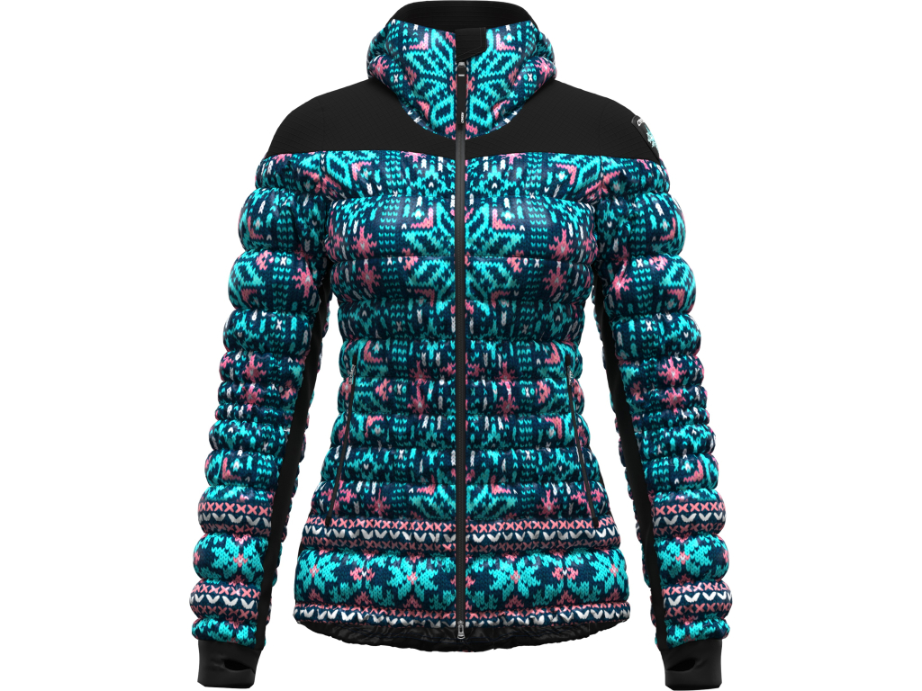 Dámská zateplená bunda JACKET CROWS WOMAN s unikátním zpracováním jednotlivých komor. Výkonná syntetická výplň MICROROLLO je uspořádána do komor, které jsou sešité pomocí elastických švů. Celá bunda je díky této technologii prakticky strečová, skvěle tak kopíruje postavu pro bezchybný vzhled. Kvalitní celoplošný potisk je i této bundy samozřejmostí. Vnější větruodolný materiál One Layer z pevného nylonu je ošetřen voděodpudivou úpravou. Oblast ramen je chráněna hrubším materiálem před oděrem a mechanickým poškozením od hran lyží či batohu. Přiléhavá zateplená kapuce pracuje s pohybem hlavy a krku. Dvě boční kapsy se zipy a jedna vnitřní kapsa na skipas, dále vnitřní síťovaná kapsa sloužící jako transportní obal. Rukávy jsou zakončené příjemnými návleky s poutky na palce, které mohou provizorně zahřát ruce, ale hlavně se skvěle doplňují s rukavicemi. Tato bunda je ideální volba na chladné dny ve městě, ale stejně tak se hodí i na alpské lyžování.